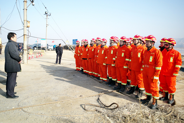 1月20日16時30分,省突發地質災害應急排查突擊總隊接到省環保廳環境污染應急救援指令。經請示集團公司黨委書記、董事長、突擊總隊領導小組組長趙廷周同意,即時啟動應急響應。17時10分,集團公司副總經理、突擊總隊指揮長馬貴鎖率突擊總隊辦公室、渭南支隊、商洛支隊30名突擊隊員,攜帶相關應急救援物資和設備,分乘8輛應急救援車,從西安、渭南、臨潼3地迅速向渭南市合陽縣洽川鎮集結。