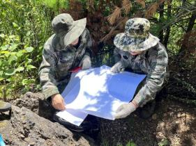 在一周的野外工作中,機關4名“穿越”人員聽從項目技術人員的指導,配合一線技術人員開展地質工作。平時習慣了辦公室工作的同志,在上山時雖略顯吃力,但都很努力地追趕項目人員的步伐,堅持與一線技術人員同進退。