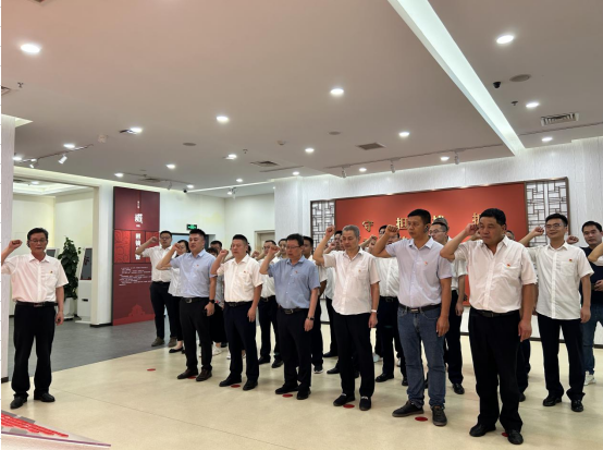 參觀結束后,公司紀委書記王榮社帶領全體黨員干部重溫入黨誓詞,這不僅是對入黨初心的深刻回顧,也是一次心靈的黨性洗禮,激勵大家“不忘初心、牢記使命”。