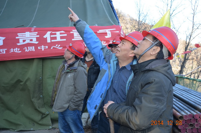 在2015年元旦即將來(lái)臨之際,12月28日,國(guó)土資源廳副廳長(zhǎng)茍潤(rùn)祥在省廳有關(guān)部門(mén)負(fù)責(zé)人、我隊(duì)王根寶隊(duì)長(zhǎng)和省地調(diào)中心相關(guān)技術(shù)人員陪同下,前往我隊(duì)正在施工的“小秦嶺整裝勘查科研深孔第一鉆”現(xiàn)場(chǎng)檢查指導(dǎo)工作,看望慰問(wèn)一線施工人員并送去慰問(wèn)品。