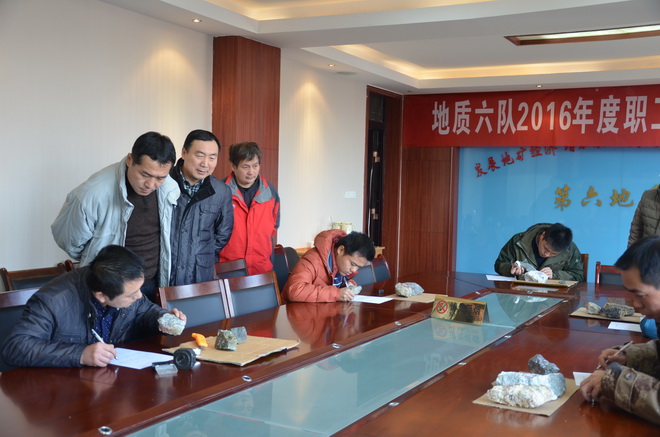 本次崗位技術比武活動分為巖(礦)石標本鑒定和地質剖面測量兩個項目,涉及四個基層單位,共78名選手參加了競賽。巖(礦)石標本鑒定采取一人三標本的辦法進行鑒定,每人鑒定時間20分鐘,自帶小刀、放大鏡等工具,不可商量或網上查詢。地質剖面測量采取5人一組半儀器法進行測量,統一用投影法進行繪制。為了增強比賽挑戰性,評委組特地在驪山人祖廟地區選取了一段約100米長的構造復雜的典型地質剖面帶,并規定比賽時間為3小時,每一組自行測量,各組不可相互商量。