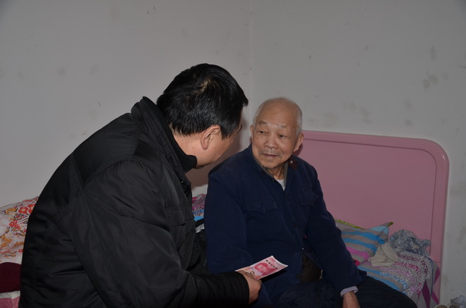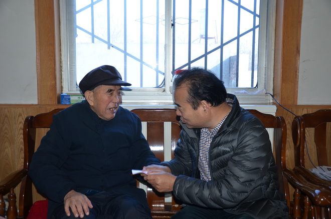 圖為工會主席夏元鵬慰問老干部、抗戰(zhàn)老兵農(nóng)光謀
