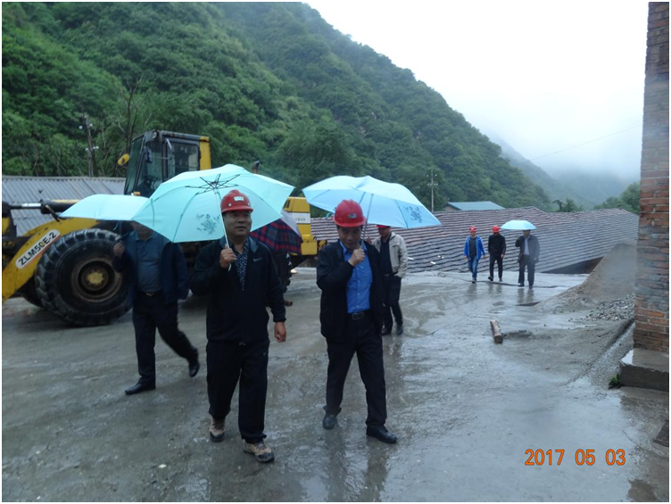 5月3日,陜西地礦集團有限公司副總經理馬貴鎖帶領檢查組冒雨深入我隊潼關礦區檢查指導安全生產,隊黨委書記王戰社陪同。