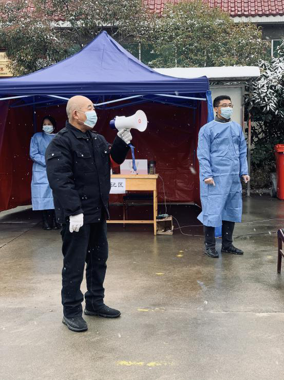 “微信運動幾萬步”,確保每棟樓、每個人做核酸。受疫情影響,大家不能出門,只能待在家里,然而,六隊志愿者日行萬步卻成為常態。代王基地設置了代東社區核酸點,西安基地設置了明園社區核酸點。每次核酸檢測志愿者都要與社區人員進行對接,協調社區共計900人左右的核酸隊伍,維護現場秩序?!?2號樓一單元的同志,下樓做核酸了”、“15號樓3單元的同志,下樓做核酸了”,為防止人員聚集,造成交叉感染,院內租住的用戶都是志愿者一樓一樓的叫下來的。代王基地院子內一共10棟樓,360人,西安基地一共4棟樓,290人。為確保不漏一戶、不漏一人,志愿者每次都要一次次的繞著院子來回的“喊”。除此之外,志愿者要在核酸檢測人員來之前擺好核酸檢測設施,拉好警戒線,連接網絡專線、通電、安裝照明燈,一片都不漏的對場地以及進院子的人員進行徹底消殺。在核酸檢測結束,人員離開場地后,志愿者仍然堅守在崗位上,因為他們還要將醫用垃圾專員清理拉走,再次對場地及人員做一次徹底消殺。在維護核酸檢測隊伍秩序時,面對不理解、抱怨聲,他們選擇用真情感染者每家每戶。
